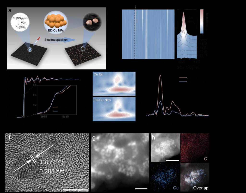 The research team developed an innovative confinement dissolution and interfacial growth strategy to develop 3-5 nm copper-loaded gas diffusion electrodes by electrodeposition using copper hydroxide formed by the slow dissolution of copper nitrate at the interface between hydrophobic electrodes and alkaline electrolyte as the copper source (Figure 3).